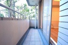 洋室のバルコニーと同じく外はマンション敷地内の緑がご覧いただけ、