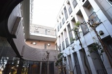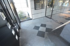 ガラス張りで開放感のある1階共用部分。 落ち着いた雰囲気です。