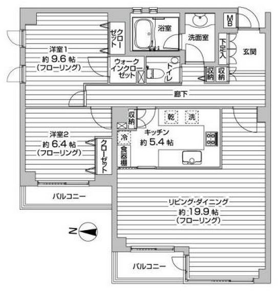 2LDK 100.99㎡ 独立キッチン・2面バルコニー