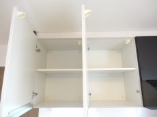 洗濯機置き場の上には棚がついているので手の届くところに洗剤を置いておけます。