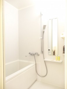 白一色の清潔感あふれるバスルーム。追い炊き機能も付いているのでいつでも暖かいお風呂に入れます。