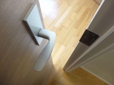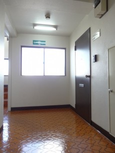 壁面は外観と同じく白いタイル貼り。エレベーターがないので階段でお部屋へ向かいます。