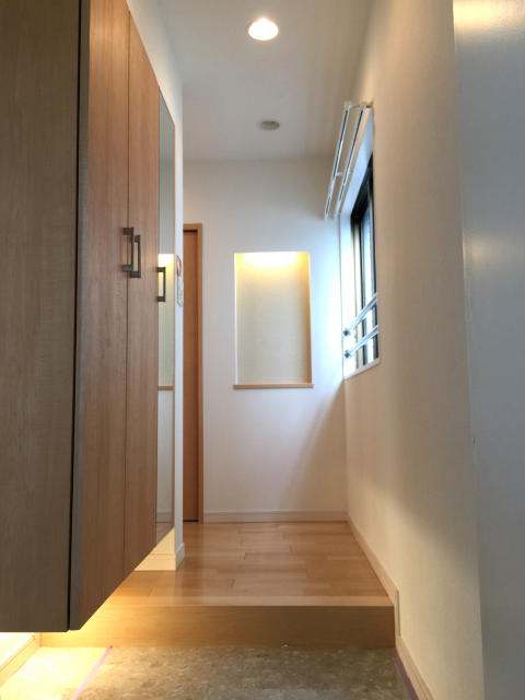 廊下は、左手に折れてお部屋へと続きます。 玄関から奥のお部屋が見えない造りはプライバシーが守れて嬉しいです♪♪
