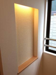 玄関正面にニッチスペースのカウンターがありました。お気に入りの絵や写真で楽しい空間を演出できそうですよ♪