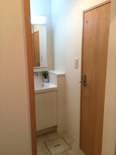 廊下左手に水回りを集めたサニタリールームがあります。水回りが集まっているとお掃除もはかどります (●´∀`)