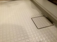 ミラー横にシャンプーなどのボトルもキレイに並べて置ける棚があり、清潔感のある空間を保てますね◎床は、水はけが良いタイプですばやく乾燥です♪♪