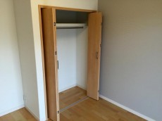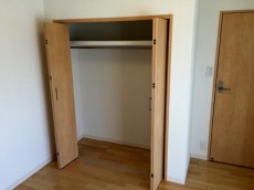 お部屋南側の壁がオシャレなアクセントクロス☆こちらのお部屋には、一番大きなクローゼットです。奥行きがかなりあるので大収納です。収納が大きいと生活スペースが広く使えて◎