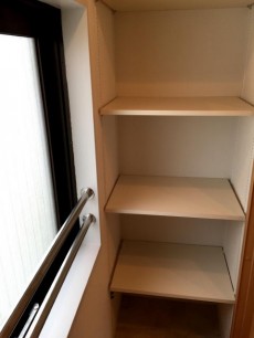 右手に可動式の棚の収納です。窓もあって明るさ、通気性もバッチリです。