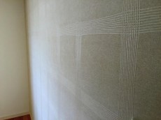 それでは、リビングダイニングから出入りすることができる3つの洋室を見ていきます。まずは、リビングの南側スライド式扉の約5.3帖の洋室から♪♪窓は西向きです。南側のクロスが、ホワイト&グレーの細かいチェック柄です。
