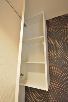 オープンシェルフはリネン類や洗剤のストックなど収納出来ます。