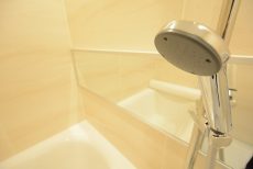 ベージュと白の淡い色調が優しく寛ぎのバスタイムを演出します。