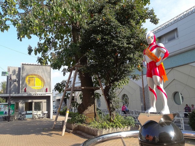 駅に流れる発車のメロディはウルトラマンのテーマソング、駅横の交番前にはウルトラマン像とあちこちでウルトラマンの気配を感じられます。