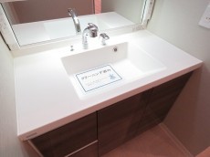 洗面化粧台も鏡の裏、引き出しと収納場所が豊富。