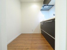 キッチンスペースは約3.5帖。一番奥に冷蔵庫が置けるようになっています。
