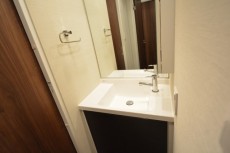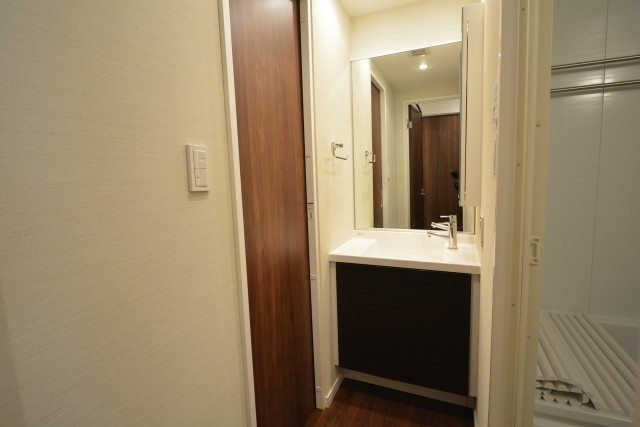 玄関のすぐ左側はサニタリールーム。ここもシックな雰囲気です。