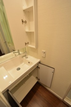 洗面台正面の鏡裏には収納はありませんが、右側と洗面台の下にはしっかり収納が付いていました!!