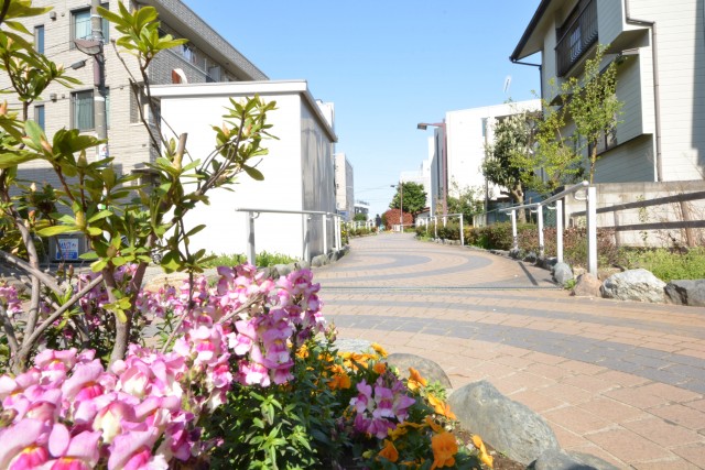 左右に遊歩道が見えてきたら、左に曲がりましょう♪ながーい遊歩道だからお散歩コースに最適です☆このままお散歩を楽しみたいところですが、途中を右に曲がると、今回ご紹介する『太子堂パレス』が見えてきます。