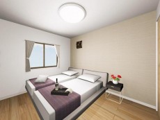 完成イメージです。建具やフローリングは木の風合い漂う木目柄仕様。LDK、洋室とも柔らかな色あいのアクセントクロスが使われ、洗練された雰囲気の空間になっています。水廻りの設備も一新。気持ちよく新生活がスタートできそうです♪