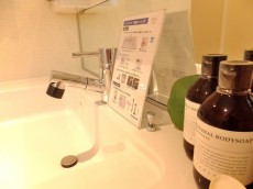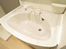 入ってすぐ左側に洗面台があります。広めで継ぎ目のないシンクはお掃除もしやすそう(^v^)