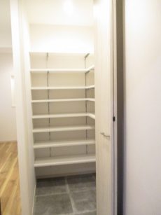 隠しておきたいお掃除グッズやサニタリーグッズも収納棚完備で安心♪