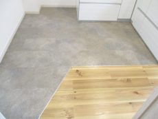 グレーと木目の組み合わせがフロアをすっきり広々と見せ、上品かつスタイリッシュな空間に作り上げています。