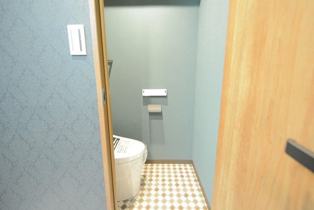 2種類のアクセントクロスを使ったモダンな雰囲気のトイレです。