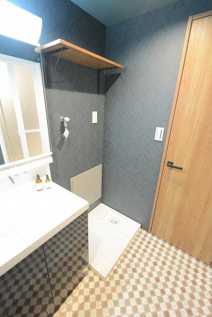 各所に収納棚を設置してあるので散らかりがちな洗濯グッズ等すっきり片付けられますね♪