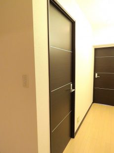右のドアはサニタリールームにつながります。ここの床は麻の様な素材のフロアマットになっています♪