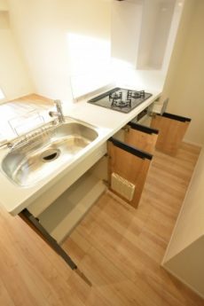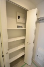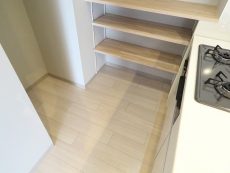 棚等は設置されていませんので、後から棚を設置したり、突っ張り棒で収納を作ったりと工夫したいですね(*´∀`*)