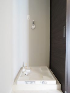 ここにはバスルーム、洗面化粧台、洗濯機置場がまとまっています。