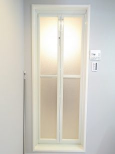 扉の横には浴室換気乾燥機の操作パネルがついています。