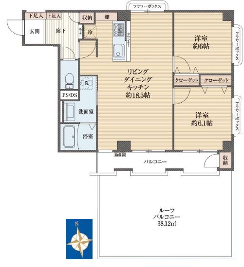 バルコニーの先は約38.12㎡あるルーフバルコニーになっています。