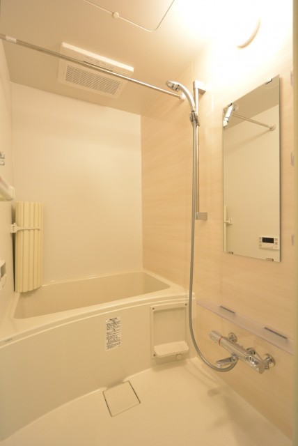 浴室は優しい色合いのパネルに囲まれたリラックス空間。ゆったりと湯舟に浸かれば一日の疲れも洗い流せそうですね♬