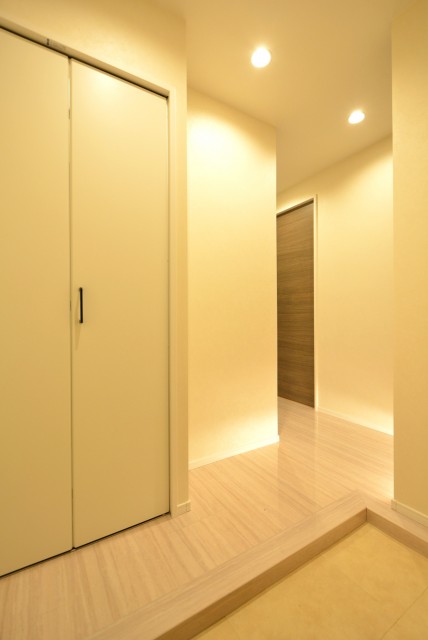 照明は人感センサー機能付ですので、玄関を開ければパッと電気がつきます。