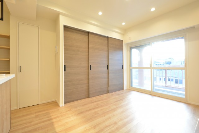 こちらは約4.7帖の洋室。LDKとバルコニーに面したお部屋です。入口に引き戸を使用しているので開け閉めによるデッドスペースもなく、スペースを無駄なく使えますよ。