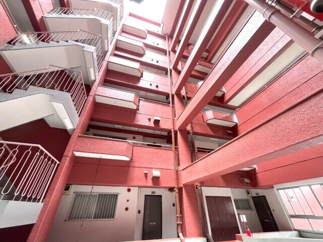 共用廊下ってどうしても無機質な印象になりがちですが、ここはあったかい雰囲気(^^♪