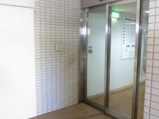 自動ドアへ入りすぐ右に管理人室と掲示板があり、左にはメールボックスが設置されています。