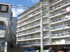 道向こうにコンビニがあり、その向かいに今回ご紹介致します「等々力ビューハイツ」があります。コンビニがすぐ近くだと何かと便利です。