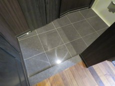 広々とゆとりのある玄関ホール。床は落ち着いたグレーのタイル貼りになっています。