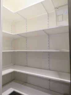 洗面室のお隣は可動棚付きの収納スペース。日用品のストックなどを入れておくのにちょうどよさそうです。