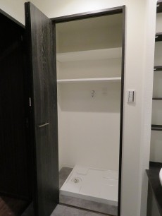 扉付きの洗濯機置場には棚がついており、洗剤や洗濯ネットなど使う物も一緒にこの中に仕舞っておけるようになっています。その他洗面室内にはリネン庫があり、タオルやシャンプーのストックなども洗面室内に保管しておけるようになっています。