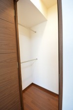 お部屋の中にあるもう1枚の扉を開けると、ウォークインクローゼットになっています。この大きさなら、収納について困ることは有りません^^
