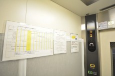 エレベーターに乗ると、中には今後の保守点検等の日程が貼りだされていました。