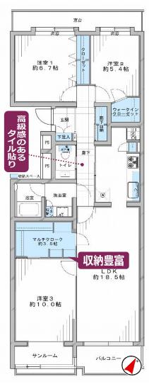 約3.5帖のマルチクロークをはじめ、ウォークインクローゼット、廊下収納など収納スペースも豊富に設けられています。スッキリ片付いたお部屋で快適な生活が送れそうです。