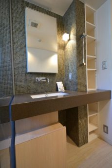 壁面には調湿・消臭機能のあるエコカラットが使用され、機能性とデザイン性の高い空間になっています。