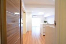 LDK入口横の白い観音開きの扉は洗濯機置場。