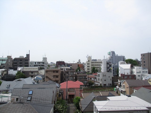バルコニーからの眺望は正面に同程度の高さのマンションがありますが。世田谷城阯公園や豪徳寺の緑望みます。
