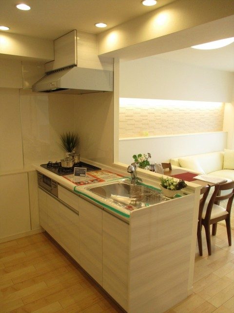 対面式キッチンは家族と会話を楽しみながらお料理をしたい方にピッタリ。お料理している姿が目に入れば家族も自然と手伝ってくれるかも・・・。