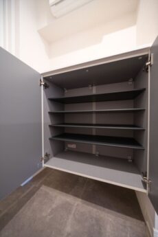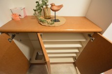 シューズボックスはセパレートタイプ。カウンター部分にはお気に入りのインテリアのディスプレイも楽しめます。パッと玄関も華やかになりそうです。