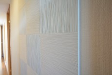 壁にはオシャレなエコカラットが使用されており、上質な空間を演出しています。調湿機能もあるそうです。